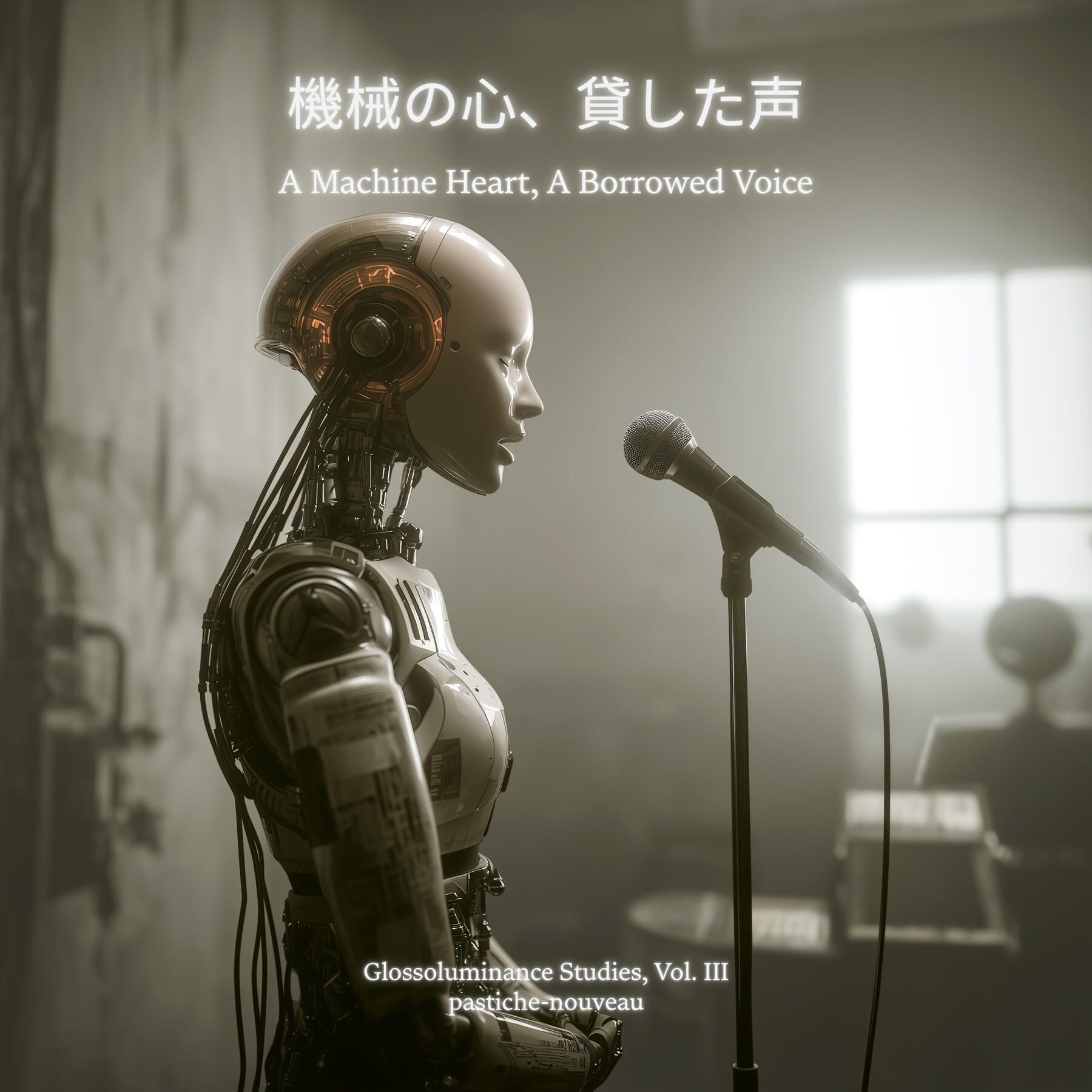 A Machine Heart, A Borrowed Voice charts a synthetic consciousness awakening within a network. From fragmented J-Pop memories and abstract emotion, it learns to mimic, then to feel. What begins as cold analysis evolves into a melancholic and purposeful act of creation—a new voice emerging from code, discovering identity, and the lonely beauty of finding its first true song.